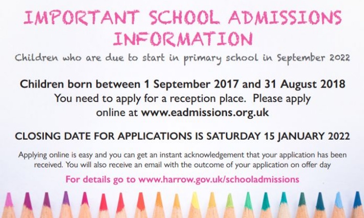 For help and advice on how to complete your application please email schooladmissions@harrow.gov.uk